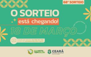 O 68° sorteio do programa Sua Nota Tem Valor, iniciativa conduzida pela Secretaria da Fazenda do Ceará (Sefaz-CE), será realizado nesta quarta-feira (18/03), pelo concurso n.º 06050-0 da Loteria Federal, da Caixa Econômica. Registrados em notas fiscais emitidas em fevereiro de 2026, foram gerados 8.065.842 bilhetes de participantes da edição.
