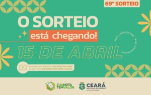 O 69° sorteio do programa Sua Nota Tem Valor, iniciativa conduzida pela Secretaria da Fazenda do Ceará (Sefaz-CE), será realizado nesta quarta-feira (15/04), pelo concurso n.º 06057-7 da Loteria Federal, da Caixa Econômica. Registrados em notas fiscais emitidas em março de 2026, foram gerados 9.085.602 bilhetes de participantes da edição.
