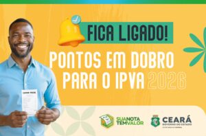 Sua Nota Tem Valor: bilhetes do 64° sorteio foram gerados 10 de novembro de 2025 15:38 Novembro é o último mês para acumular pontos para IPVA 2026 e tem pontos em dobro para cinco segmentos A Secretaria da Fazenda do Ceará Leia mais »